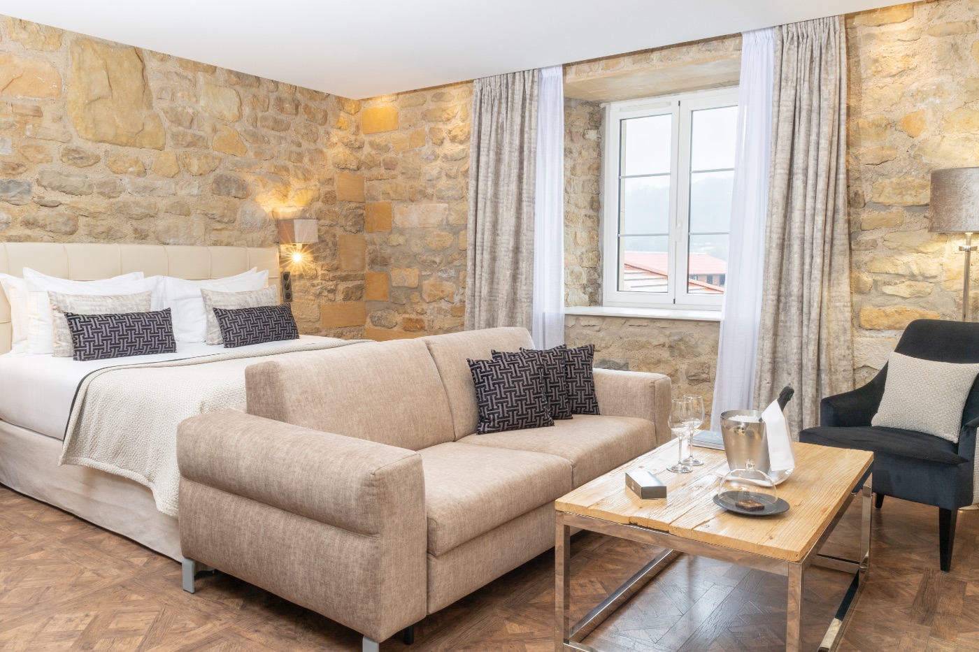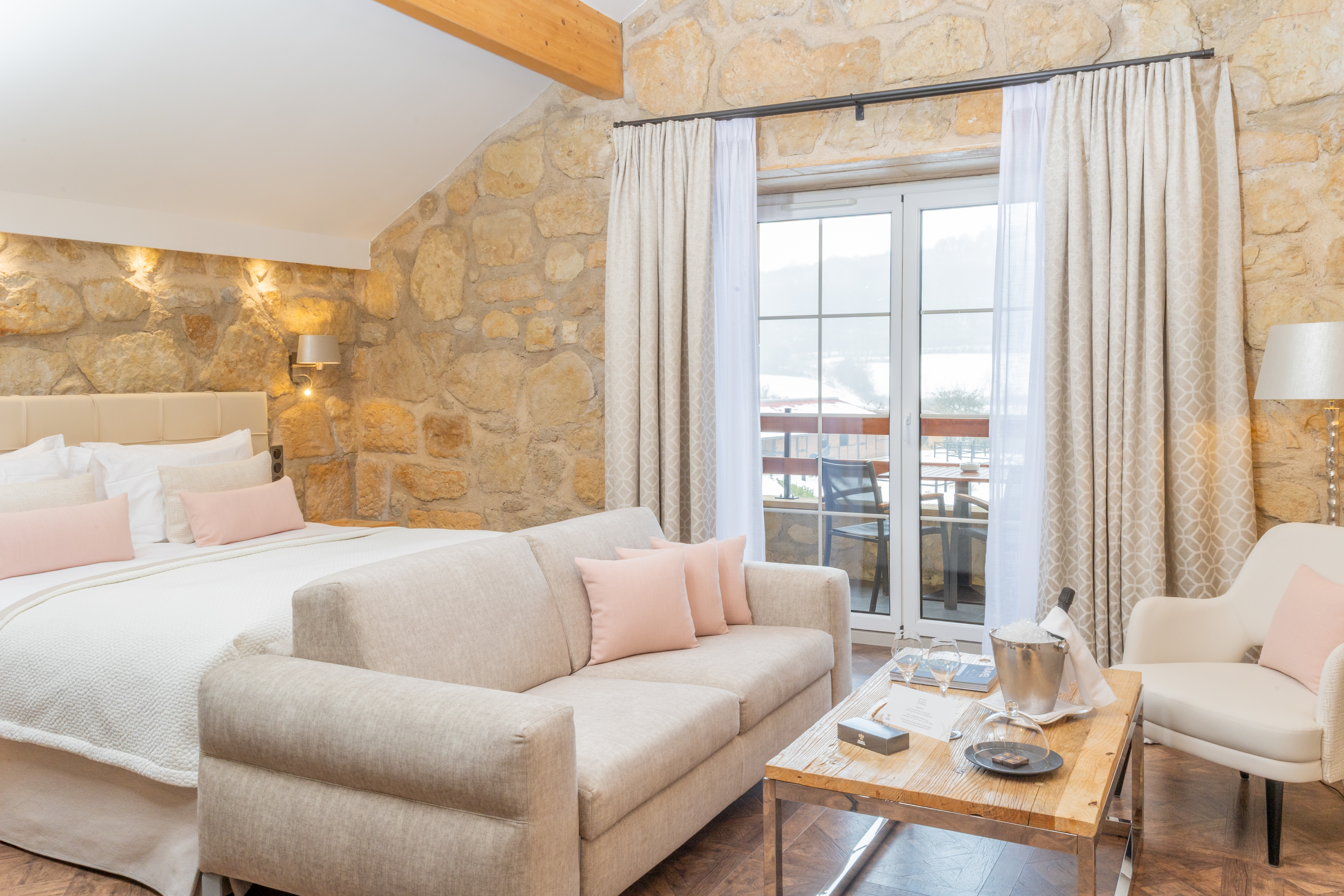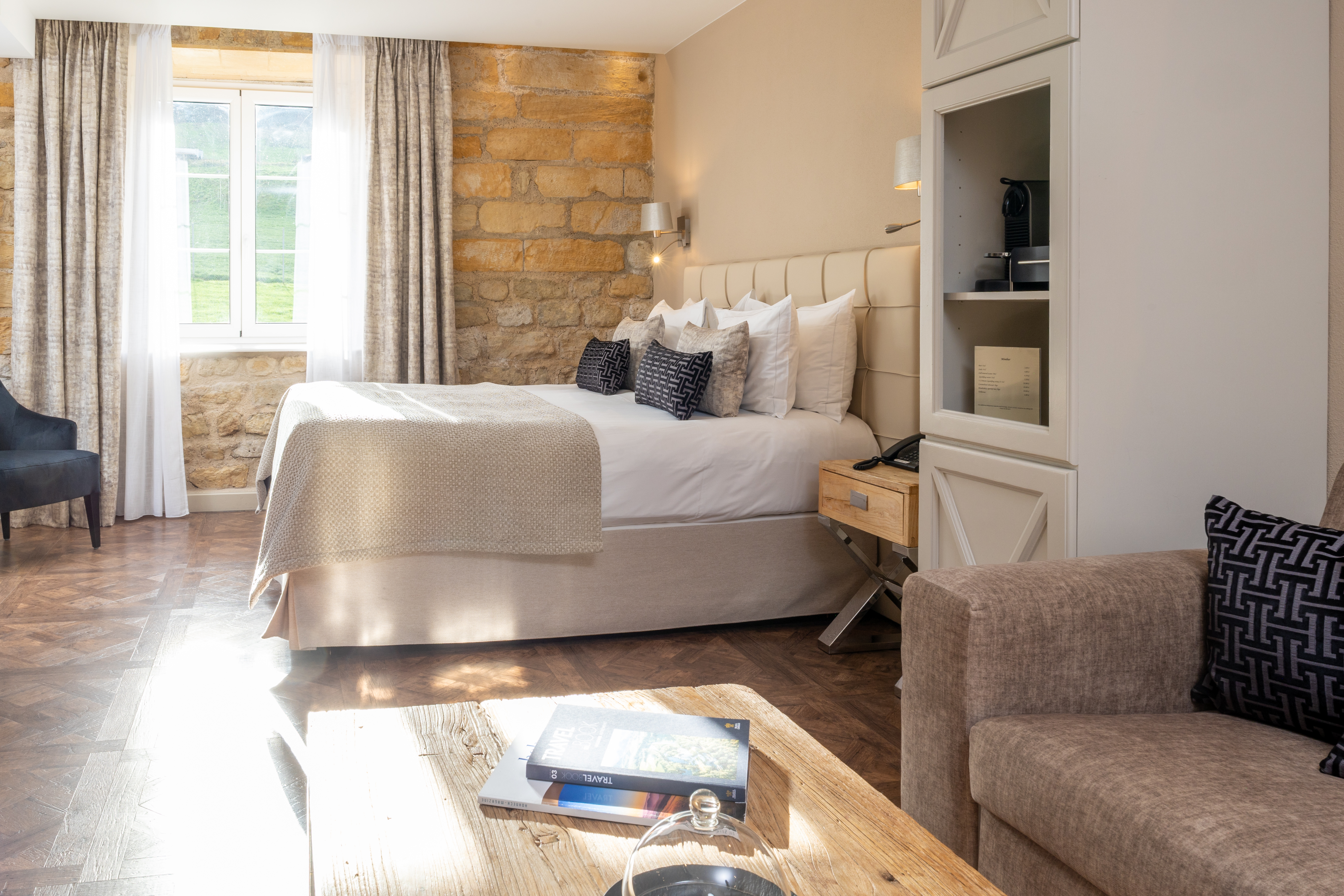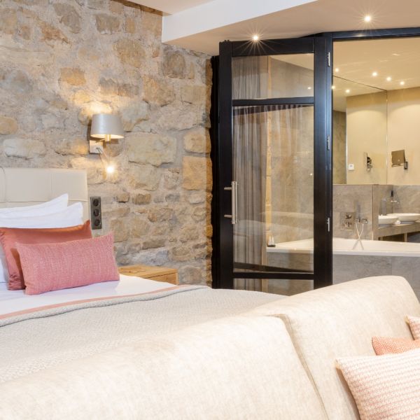 Kick your shoes off and relax on this room’s balcony with its view over the Auberge. It has the same fittings as our Superior rooms. 29m2.