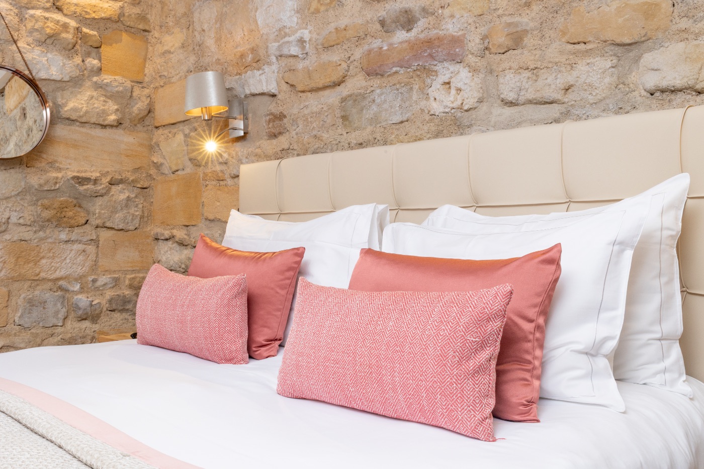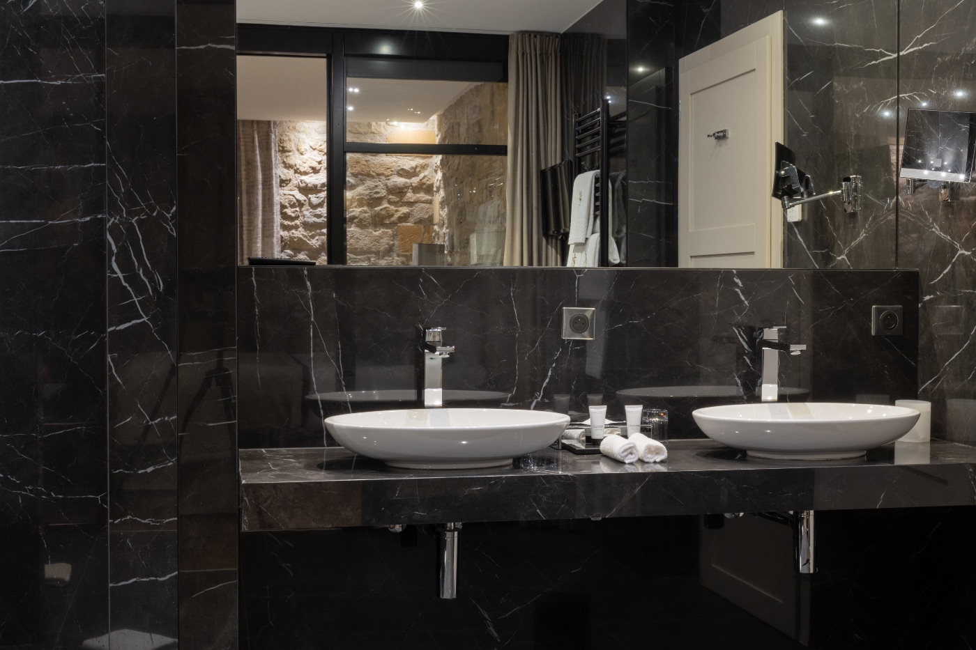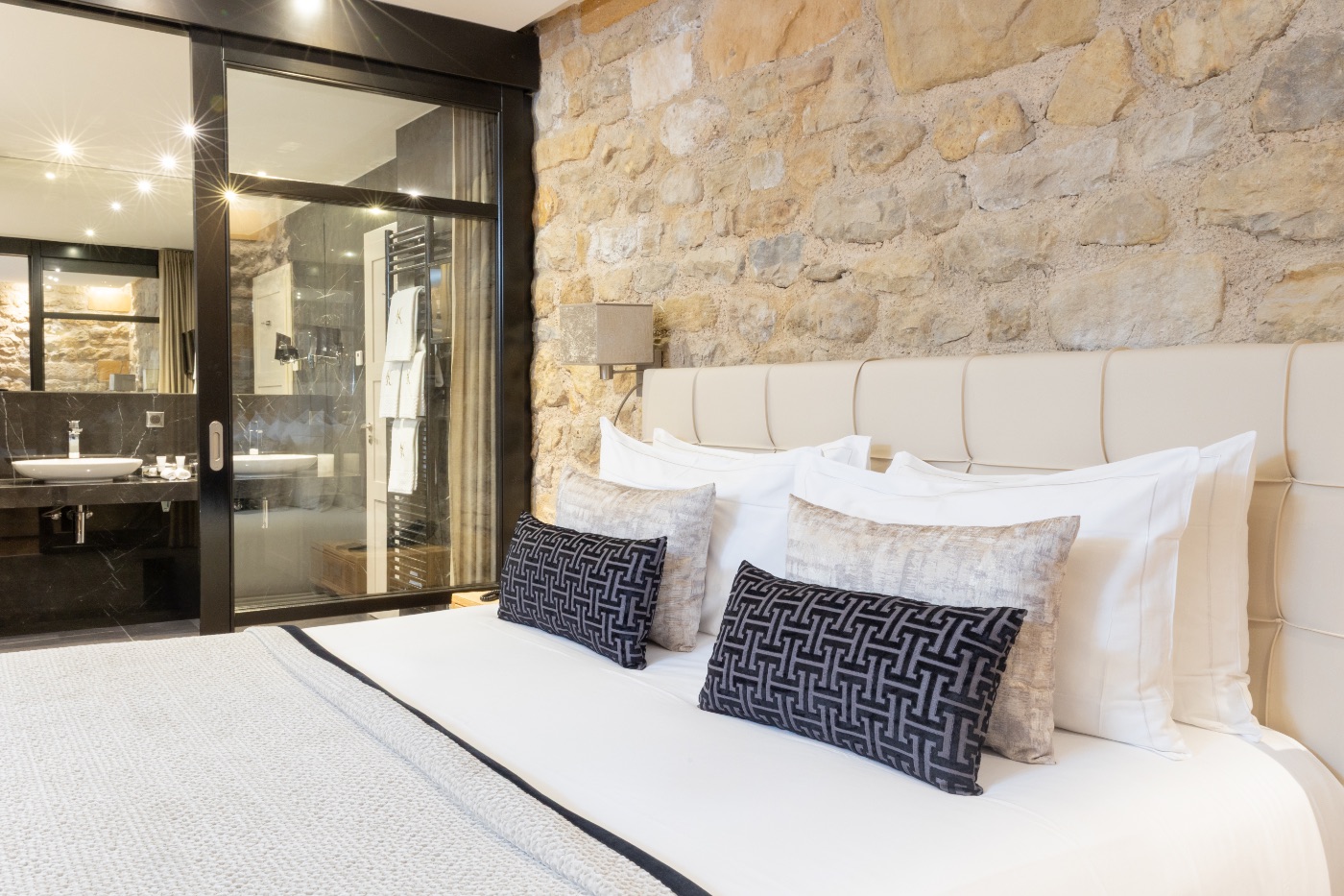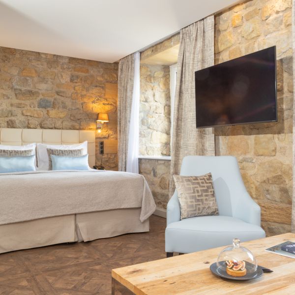 Enjoy the charm of these carefully decorated, welcoming rooms, fitted with all the modern amenities. They have a king-sized bed, a bathroom with shower, WC and hair dryer. All our rooms have a large flat-screen TV, Wi-Fi access, a safety deposit box and a mini-bar. A bathrobe and slippers are also available, so you can fully enjoy a moment of well-being in the SPA. Two of our rooms comply with standards for disabled people. Surface area from 25m2 to 30 m2.